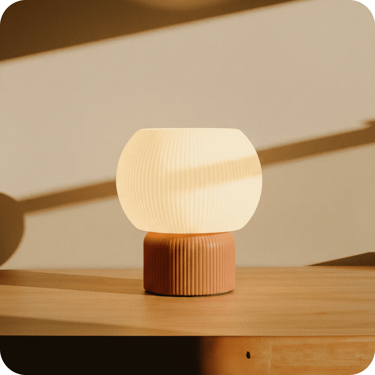 The Edamame No. 2 lamp is defined by soft proportions and a balanced, sculptural form. Its gently rounded shade diffuses light evenly, creating a warm and calming atmosphere. Subtle vertical lines add texture and depth, giving the lamp a quiet presence that feels both modern and timeless.